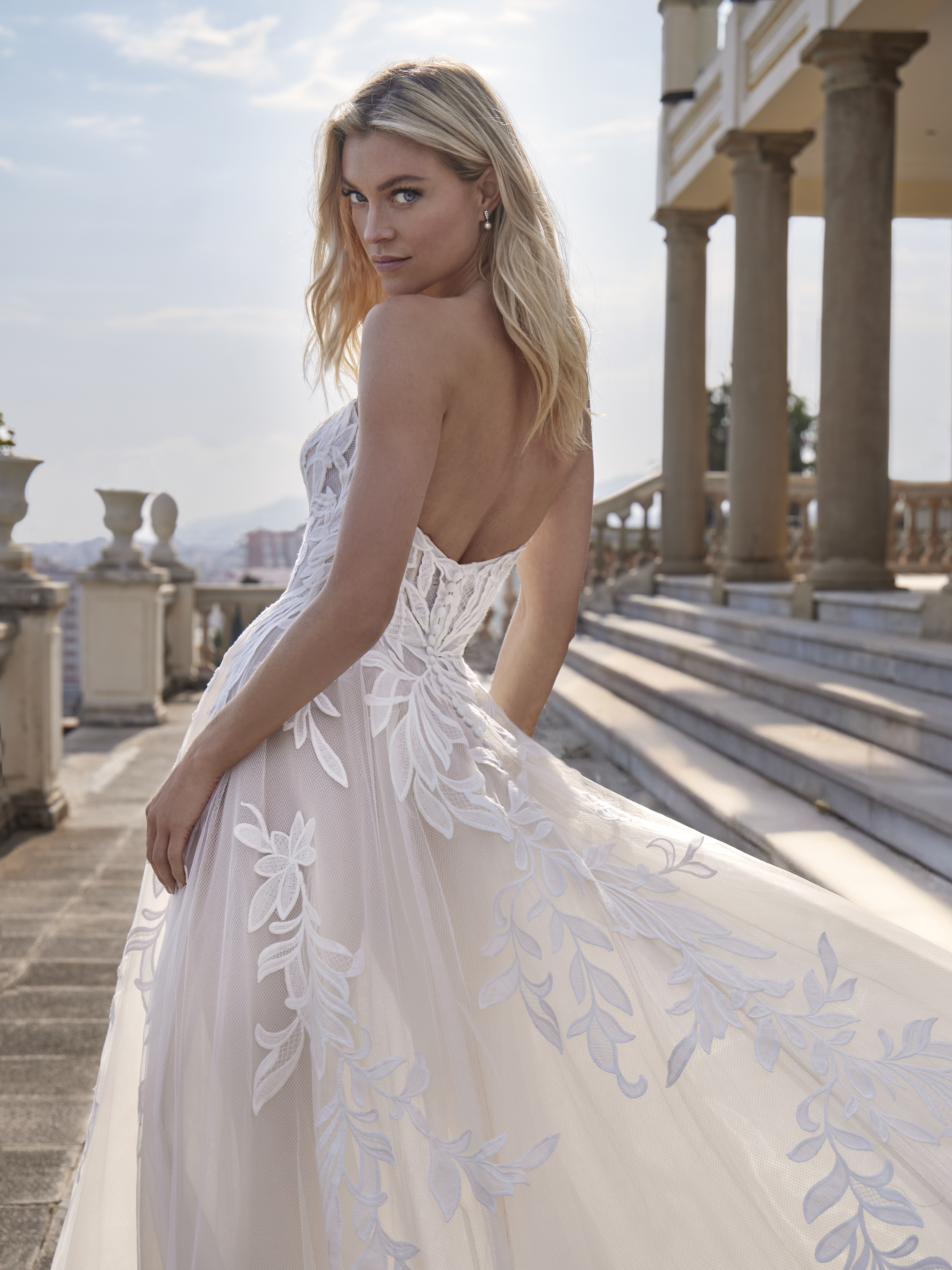 Élégante et aérienne, cette robe de mariée coupe A sublime la silhouette par son décolleté droit et sa jupe au volume délicatement équilibré. Conçue en tulle vaporeux et rehaussée de motifs de dentelle appliqués avec finesse, elle dégage une impression de légèreté et de fraîcheur. Chaque mouvement révèle la fluidité de la jupe, offrant une allure gracieuse et naturelle. Une création raffinée, idéale pour une mariée à la recherche d’un style à la fois moderne, doux et sophistiqué.